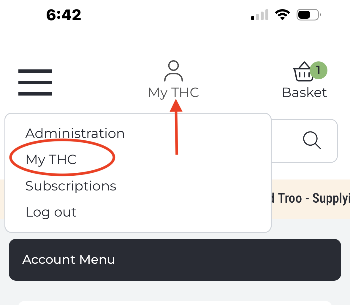 The process is similar on a mobile phone. First click the 'My THC' account icon